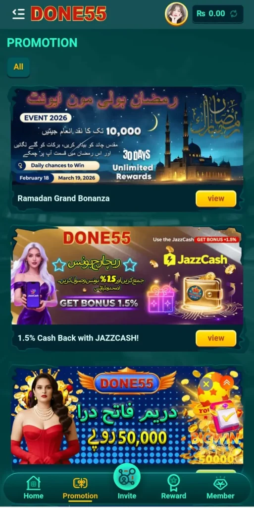 In addition, the game is designed for mobile users in Pakistan. The majority of users play DONE55 Game on their Android mobile phones. The system is designed in such a way that it provides easy controls, bright colors, and simple navigation. Therefore, new users do not get confused about the layout of the system. Additionally, the system provides local payment options for Pakistani users.